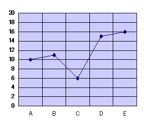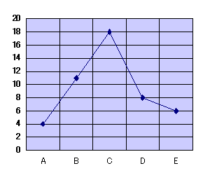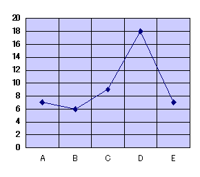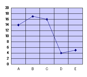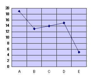 前ページの性格分析のテストの結果で、( A、B、C、D、E )のスコアにあった数字を、下のグラフに入れて、折れ線グラフを作ってください。それが、あなたの性格グラフです。